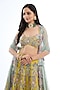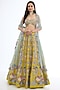 Featuring a lime lehenga in raw silk base with applique embellishment. It is paired with a blouse and a tulle dupatta. Accentuate it with statement earrings and heels for weddings or mehendi ceremonies.