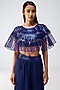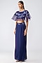 Featuring a cosmos cape top in butterfly and satin chiffon base. It is paired with pants. Accentuate it with stud earrings and heels for an evening look.