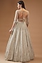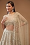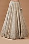 Featuring a gracious ivory lehenga in organza base, an ideal and aesthetically designed choice for the contemporary Indian bride. This chic lehenga set is higlighted with intricated embroidery, paired with a matching blouse and a silk dupatta to complete the royal bride's look.