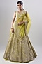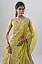 Featuring a lime green lehenga in organza base with hand embroidery. It is paired with an embroidered blouse and a dupatta. Accentuate it with zircon jewellery and block heels for a wedding, mehendi or an engagement ceremony.