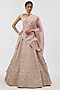 Featuring a blush pink lehenga in organza base. It is paired with a blouse and a dupatta. Style it with diamond jewellery and block heels, perfect for a wedding, sangeet or engagement ceremony.