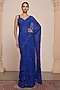 Electric Blue Georgette Tiered Ruffled Saree Set
