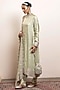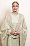 Featuring a sea green kurta in silk tissue base. It is paired with dupion silk churidar pants and a dupatta. Style this set with kundan earrings, block heels and a sleek bun, an ideal choice for festive occasion, sangeet or engagement ceremony.
