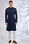 Navy Silk Hand Embroidered Sherwani Set