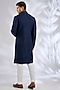Featuring a navy sherwani in silk base with hand embroidery. It is paired with terry cotton pyjama pants. Perfect attire for a wedding or festive ceremony, exuding traditional charm and timeless elegance.