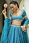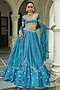 Featuring a peacock blue lehenga in uppada silk and organza base with pitta, sequins and zardosi embroidery. It is paired with an embroidered blouse and an embroidered dupatta. Accentuate it with statement jewellery, low bun and heels for a wedding or engagement ceremony.