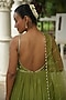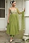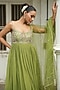 Featuring a pista green anarkali in uppada silk, crepe and net base with sequins, pearls, cutdana and resham embroidery. It is paired with pants and a dupatta. Accentuate it with dangler jewellery and heels for a festive occasion, mehendi, wedding, sangeet or engagement ceremony.