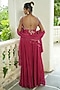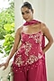 Featuring a red kurta in uppada silk, chinon chiffon and organza base with dabka work, sequins and zardosi embroidery. It is paired with sharara pants and a dupatta. Accentuate it with dangler jewellery and heels for a festive occasion, wedding or engagement ceremony.