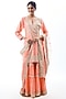 Featuring a coral pink kurta in cotton silk base with embroidery. It is paired with cotton sharara pants and an organza dupatta. Pair it with jewellery and heels for a glamorous appeal, Perfect for wedding ceremony or festive occasions.