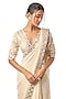 Featuring an ivory saree in chiffon base with embroidery. It is paired with a tussar blouse having sequins embroidery. Accentuate it with zircon jewellery and heels for a wedding or haldi ceremony.