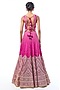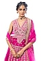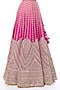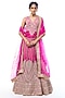 Featuring a pink lehenga in tussar base with motifs and mirror embroidery. It is paired with a blouse having a v-neckline and a sheer organza dupatta. Accentuate it with statement jewellery and heels for a wedding, sangeet or engagement ceremony.