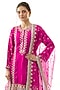 Featuring a pink kurta in tussar silk base with silver gota and thread embroidery. It is paired with sharara pants and an organza dupatta. Accentuate it with statement jewellery and embellished heels for festive occasions or wedding ceremonies.