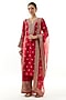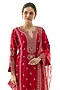 Featuring a red kurta in tussar silk base with embroidery. It is paired with cotton palazzo pants and an organza dupatta. Accentuate it with statement jewellery and embellished heels for festive occasions or wedding ceremonies.