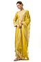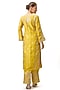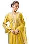 Featuring a yellow kurta in tussar silk base with embroidery. It is paired with cotton palazzo pants and an organza dupatta. Accentuate it with statement jewellery and embellished heels for a festive occasion or pooja ceremony.