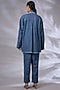 Featuring a blue enzyme washed shirt in denim base with embellishments and frayed edges. It is paired with matching frayed edges trousers. Style with neutral heels, ideal for casual wear.