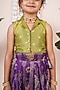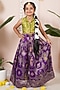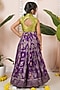 Featuring a purple skirt for girls in georgette banarasi base. It is paired with a green top. Accessorize it with matching hair accessories and sandals for a stylish ensemble, ideal for festive occasion, pooja or wedding ceremonies.