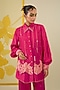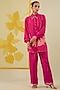 Featuring a hot pink shirt in linen satin base with applique, sequins and pearl work. It is paired with pants. Style it with statement earrings, soft curls and block heels, perfect for an evening look.