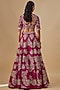 Featuring a pink lehenga in raw silk base with zardosi embroidery. It is paired with an embroidered blouse and a dupatta. Accentuate it with statement jewellery and block heels for weddings or sangeet ceremonies.