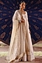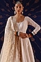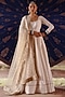 Featuring an ivory anarkali in chanderi and organza base with hand embroidery and antique gold dori work. It is paired with pants and a dupatta. Accentuate it with statement jewellery, block heels and a potli bag for a wedding or a engagement ceremony.