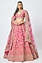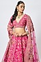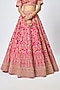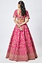 Featuring a rani pink lehenga in raw silk base with thread, cutdana hand and machine embroidery. It is paired with a blouse and a dupatta. Style it with emerald jewellery and soft curls for bridal reception or engagement.