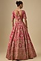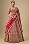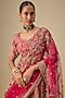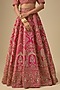 Featuring a rani pink lehenga in raw silk base with hand and machine embroidery. It is paired with a blouse and a dupatta. Accentuate designer lehenga with statement jewellery and heels for a wedding, engagement or sangeet ceremony.