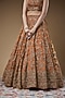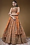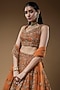 Featuring a rust lehenga in organza base with hand and machine embroidery, including a cancan. It is paired with an embroidered blouse and a dupatta. This elegant lehenga is the perfect addition to your bridal trousseau.