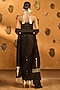 Masaba presents a mesmerizing black corset in crepe silk base with gold motif embroidery, adjustable dori and tassel detailing. It is paired with a draped skirt and a sash having gold embroidery and foil print. Elevate the look with statement jhumkas, embellished heels, a clutch and a sleek bun for opulent sangeet ceremonies or cocktail soirees.