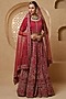 Featuring a red lehenga in viscose silk base with hand work. It is paired with a blouse and a net dupatta. Accentuate it with dangler earrings and heels for a wedding ceremony or a bridal look.