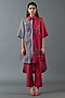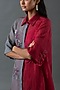 Featuring a slate grey and maroon tunic in japanese quash base with floral embroidery. It is paired with pants and a cotton satin inner. Accentuate with statement jewellery and heels for a complete look.
