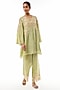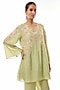 Featuring a mist kurta in silk base with crystal, sequins, beads, floral applique hand and machine embroidery. It is paired with satin pants and cotton slip. Accentuate it with dangler earrings and heels for a festive occasion pooja ceremony.