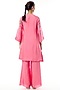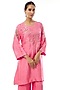Featuring an orchid pink kurta in silk base with sequins, beads, crystal and floral hand embroidery. It is paired with silk pants and cotton slip. Accentuate it with dangler earrings and heels for a festive occasion pooja ceremony.
