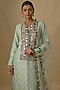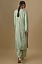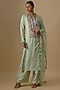 Featuring a mint green kurta in dola silk base with embroidery. It is paired with palazzo pants and a dupatta. Accentuate it with polki earrings and block heels for a festive occasion or sangeet ceremony.