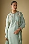Featuring an aqua kurta in silk base with dori work. It is paired with cotton satin pants and an organza dupatta. Accentuate it with kundan polki jewellery and heels for festive gatherings or pooja ceremony.
