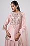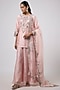 Featuring a flamingo colored kurta in silk base with resham and maal work. It is paired with sharara pants and an organza dupatta. Accentuate it with swarovski jewellery and heels for a wedding or sangeet ceremony.