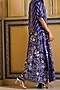 Featuring a royal blue cape in organza base with embroidery. It is paired with a dupion embroidered bustier and a satin draped skirt. Accentuate it with zircon or swarovski jewellery and embellished heels for a wedding or sangeet ceremony.