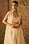Featuring an ivory sleeveless jacket in organza base with embroidery. It is paired with a net blouse having pearl embroidery and sharara pants. Style it with statement jewellery and heels for a wedding or engagement ceremony.