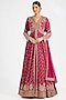 Red Silk Embroidered Anarkali Set