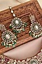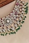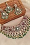 Featuring a gold finish choker necklace studded with pink kundan polki, red and green stones, set in brass. It is paired with a matching pair of earrings. Perfect for grand occasions like weddings and traditional festivities.