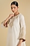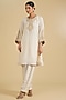 Featuring an ivory choga kurta in pure upada silk base with pearls, aari, sequins, dabka and zardosi embroidery, including a zero neckline. It is paired with pants. Accentuate it with dangler earrings and heels for a festive occasion or pooja ceremony.