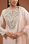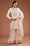 Featuring a light pink short kurta in habutai base with silver dori and hand embroidery. It is paired with crinkled sharara pants having silver work at hem and an organza embroidered dupatta. Accentuate it with statement earrings and heels for a festive occasion or pooja ceremony.