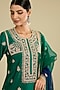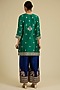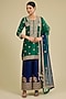 Featuring an emerald green kurta in spun silk base with gota and marori work. It is paired with deep blue palazzo pants and a dupatta. Accentuate it with statement earrings and heels for festive occasions or wedding ceremony.