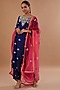 Featuring a navy blue kurta in pure spun silk base with golden dabka work. It is paired with pants and a dupatta. Style this designer kurta with chandbali earrings and heels for any festive occasion or an engagement ceremony.