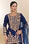 Featuring a navy blue kurta in spun silk base with marori and sequins work. It is paired with embroidered sharara pants and a dupatta. Accentuate with statement jewellery and heels for a festive ceremony.