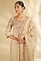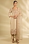Featuring a pearl white kurta in spun silk base with marori and sequins work. It is paired with pants and a dupatta. Accentuate it with statement earrings and block heels for a festive occasion or wedding ceremony.