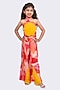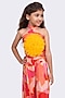 Coral & Yellow Rayon Printed Palazzo Pant Set For Girls