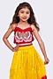 Featuring a yellow and red tie-dyed lehenga for girls in polyester base. It is paired with an embroidered red choli and a dupatta. Style it with cute hair accessories and sandals for a festive occasion or wedding ceremony.