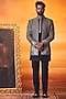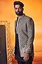 Featuring a black indowestern jacket in soft silk base with kashmiri embroidery. It is paired with a kurta and trousers. Style it with mojaris for a festive occasion, wedding or sangeet ceremony, exuding charm and elegance.